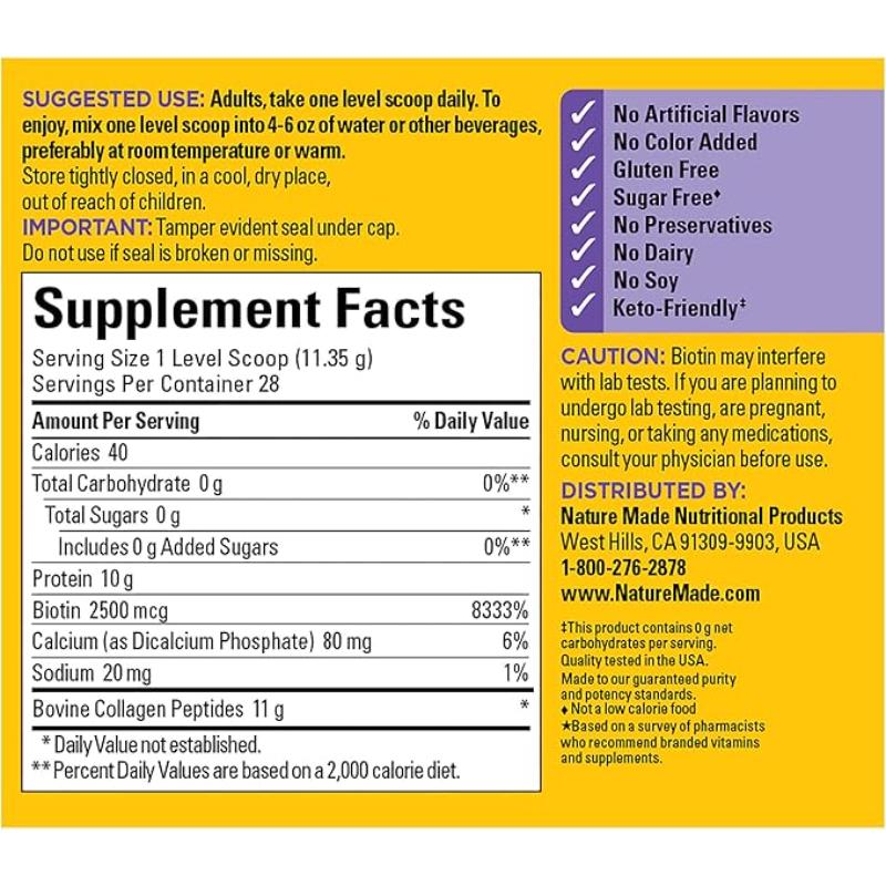 This Collagen Peptides powder is sugar-free, keto-friendly, gluten-free, and free from artificial colors, flavors, preservatives, dairy, and soy. Simply mix one scoop of the powder into 4-6 oz of water or another beverage of your choice. Ideal for daily use, this product supports joint health, beauty from within, and overall well-being.